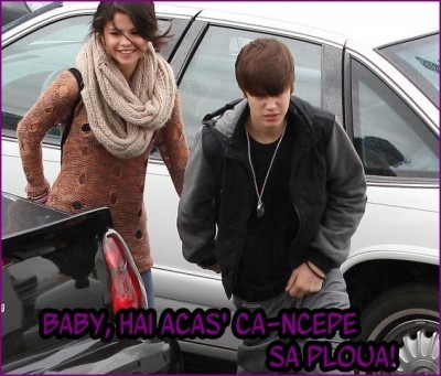 Deşi Selena Gomez anunţa pe pagina ei de facebook sâmbăta trecută că se separă şi că fiecare va merge de acum încolo pe drumul său, înnebunind o lume întreagă cu ce-a vrut de fapt să zică (s-a jucat puţin cu inima lui Bieber şi cu articolele noastre, căci era vorba despre renunţarea la colaborarea muzicală cu trupa sa), cei doi porumbei au fost fotografiaţi cum alergau prin ploaie totul să ajungă cât mai repede la un local din California pentru o porţie de prăjitureală .